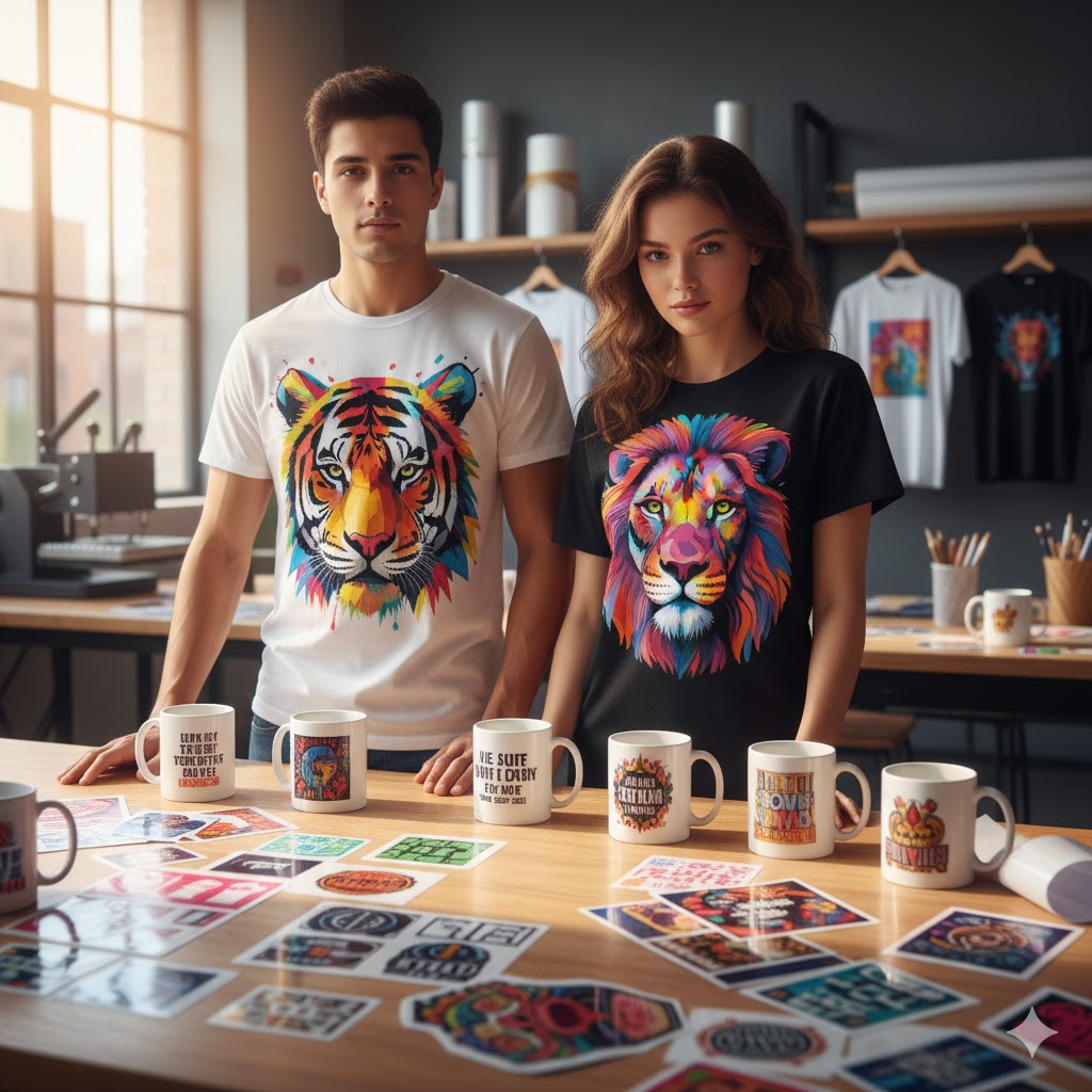 Custom apparelincludes shirts, hoodies, and more printed with your logo, artwork, or message, perfect for branding, events, or personal style.