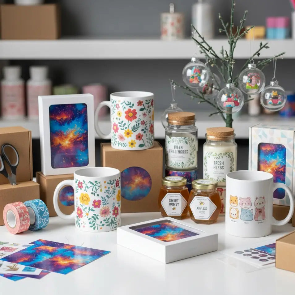 - Drinkware decals sized for tumblers, bottles, and mugs